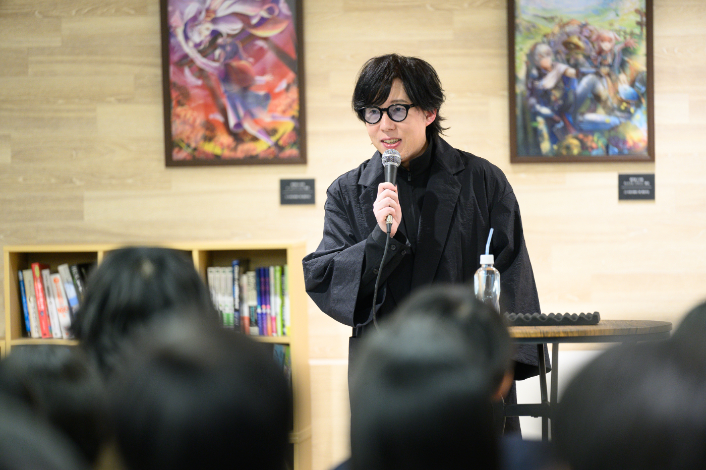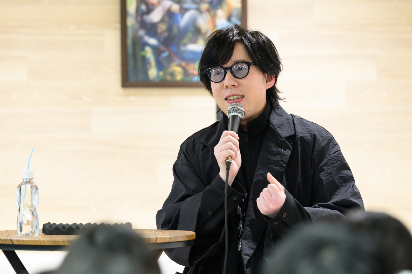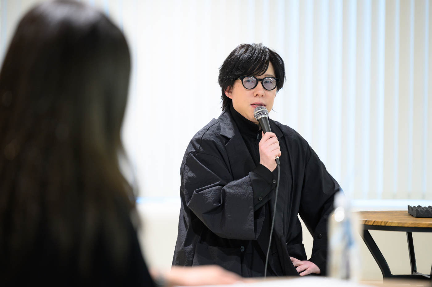 今回のオープンキャンパスの講師は、アニメ『オーバーロード』シリーズ アインズ・ウール・ゴウン役、『鬼滅の刃』煉獄杏寿郎役、『ハイキュー!!』澤村大地役など数多くご出演の日野聡さん。KADOKAWAアニメ・声優アカデミー講師・山本周子アナウンサーがインタビュアーとなって進行していきます。