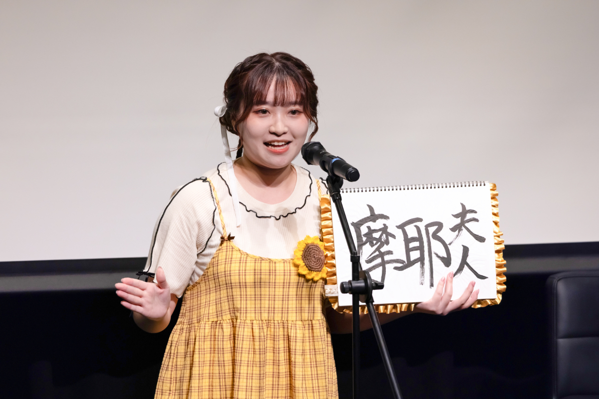 続いて、男性の声色で「どうして、あんたはこの絵の価値がわからないんだ!僕だけは、あんたが一生懸命頑張っていることをいちばんわかってる!」と力強く演技。そして、ナレーションを披露。「名前は、お寺生まれということで仏教からきています。お釈迦様のお母様に当たる人が摩耶夫人と言います。ぜひ、覚えて帰ってください」とアピール。