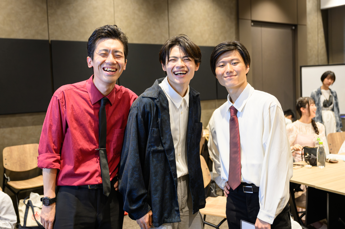 N.Sさん(写真中央)「とても緊張しましたが、笑顔を絶やさないようにしました。演技では、役になり切ることを意識しました!」