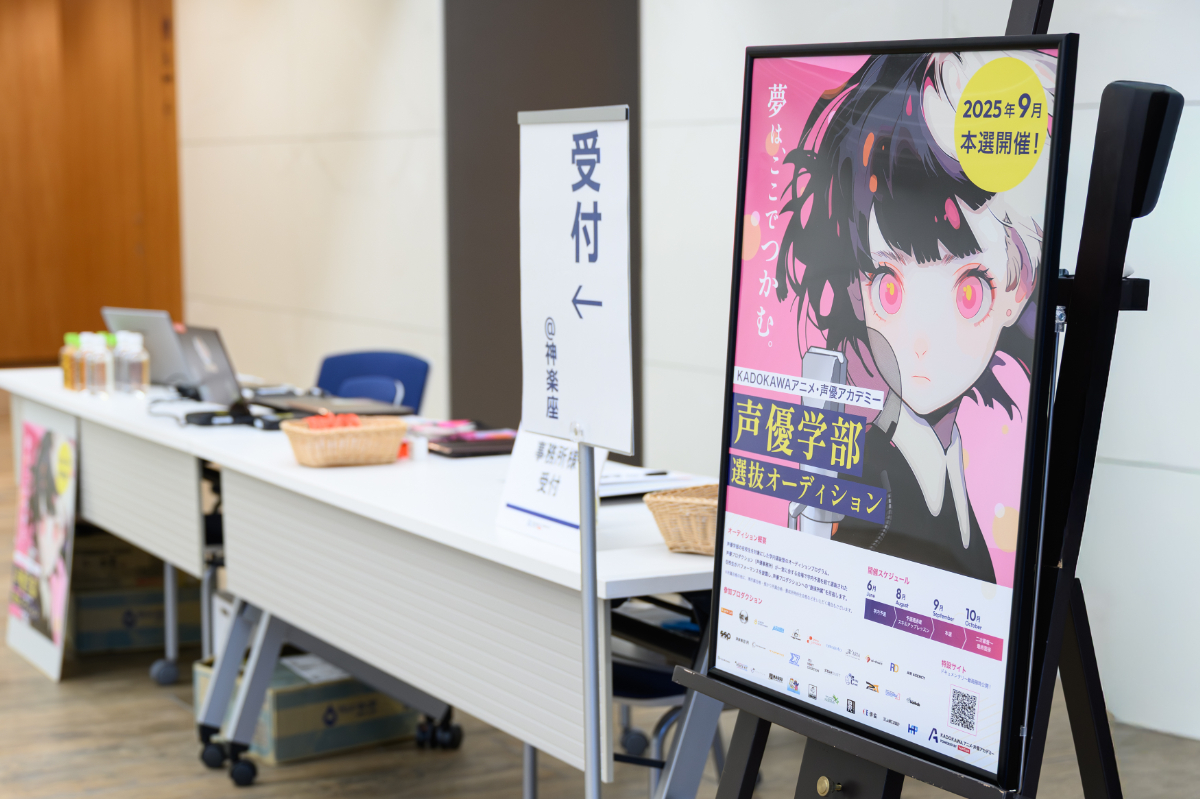 会場となった KADOKAWA 富士見ビルの「神楽座」は、映画の記者会見やイベントでも使用される本格仕様の多目的ホールで、この会場でオーディションを経験できるのもKADOKAWA グループがもつ魅力のひとつです。
