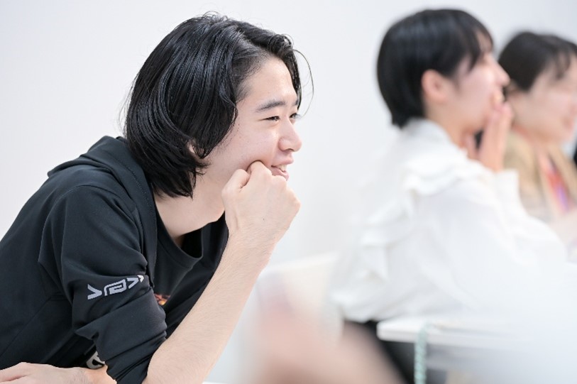 声優専攻Mさん「すごく面白いです!普段は校舎が違うので、ノベル専攻やマンガ専攻の生徒にお会いすることがないのですが、仲良くなることができました。制作過程を見て、こうやって作品のバトンが各部門に渡されていくんだなと思いました。考えてみたら、お仕事の現場も一緒ですよね!」とコメント。