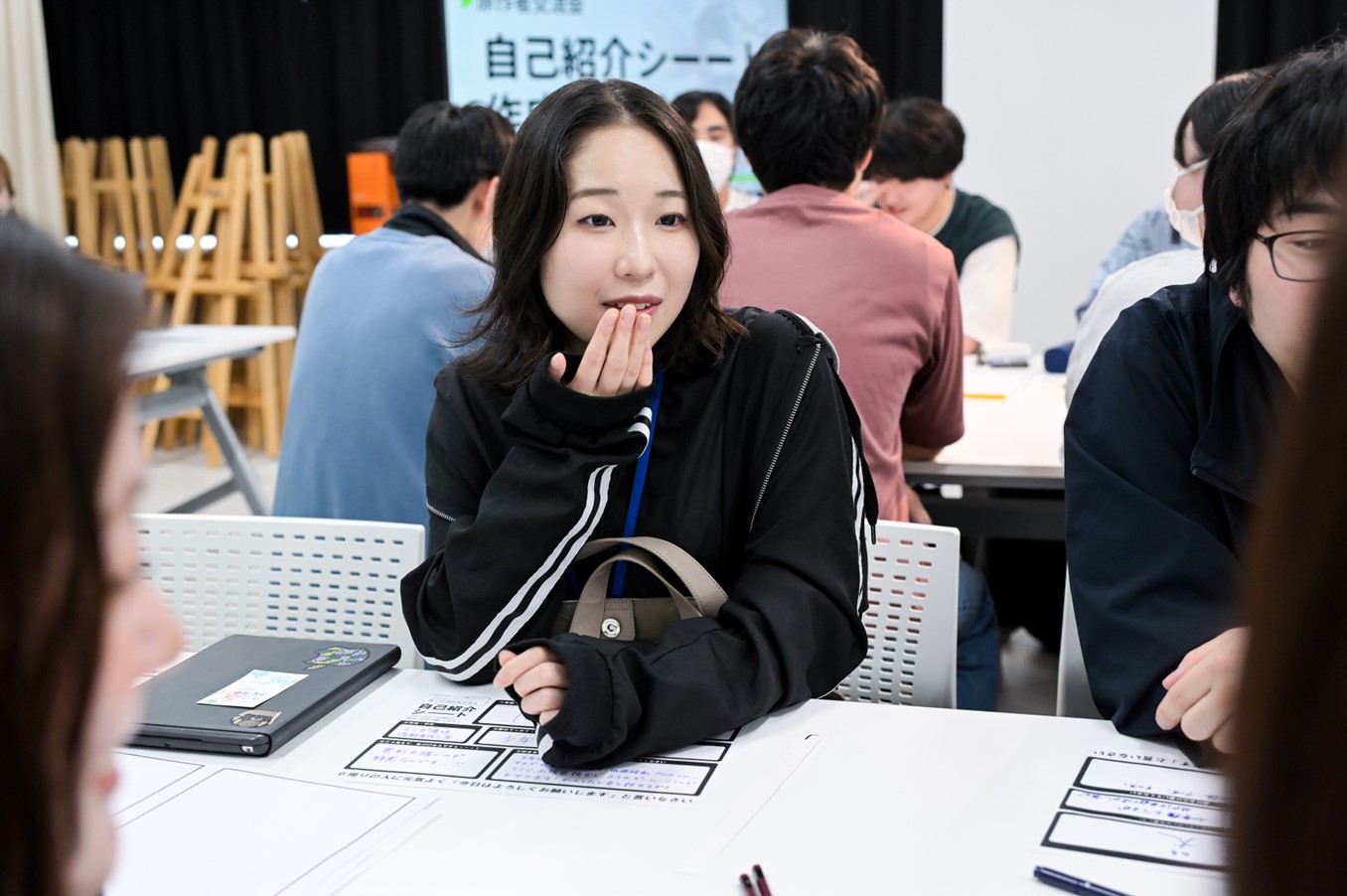 その後の自由交流では、名簿を確認して気になる学生に声をかけに行ったり、