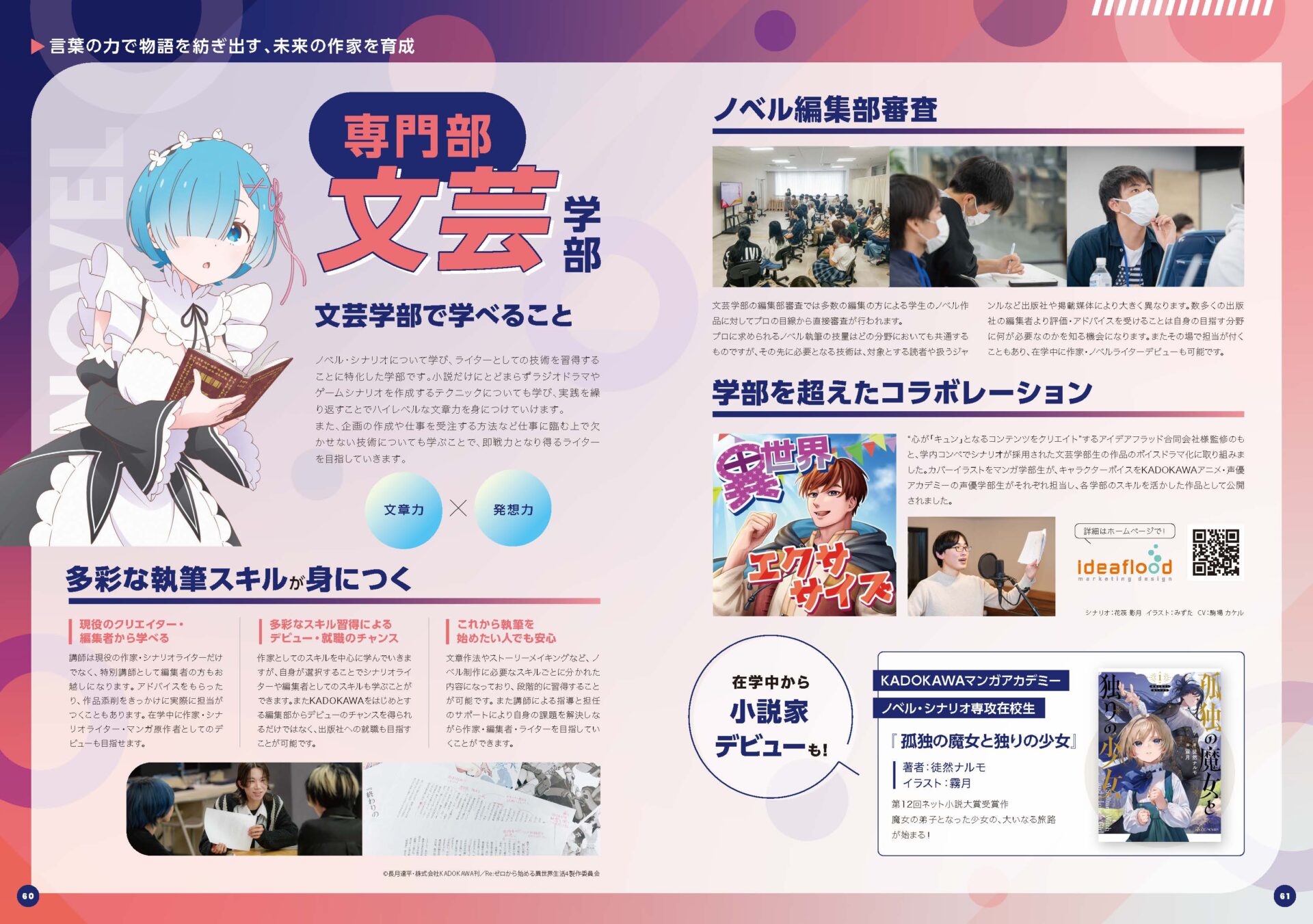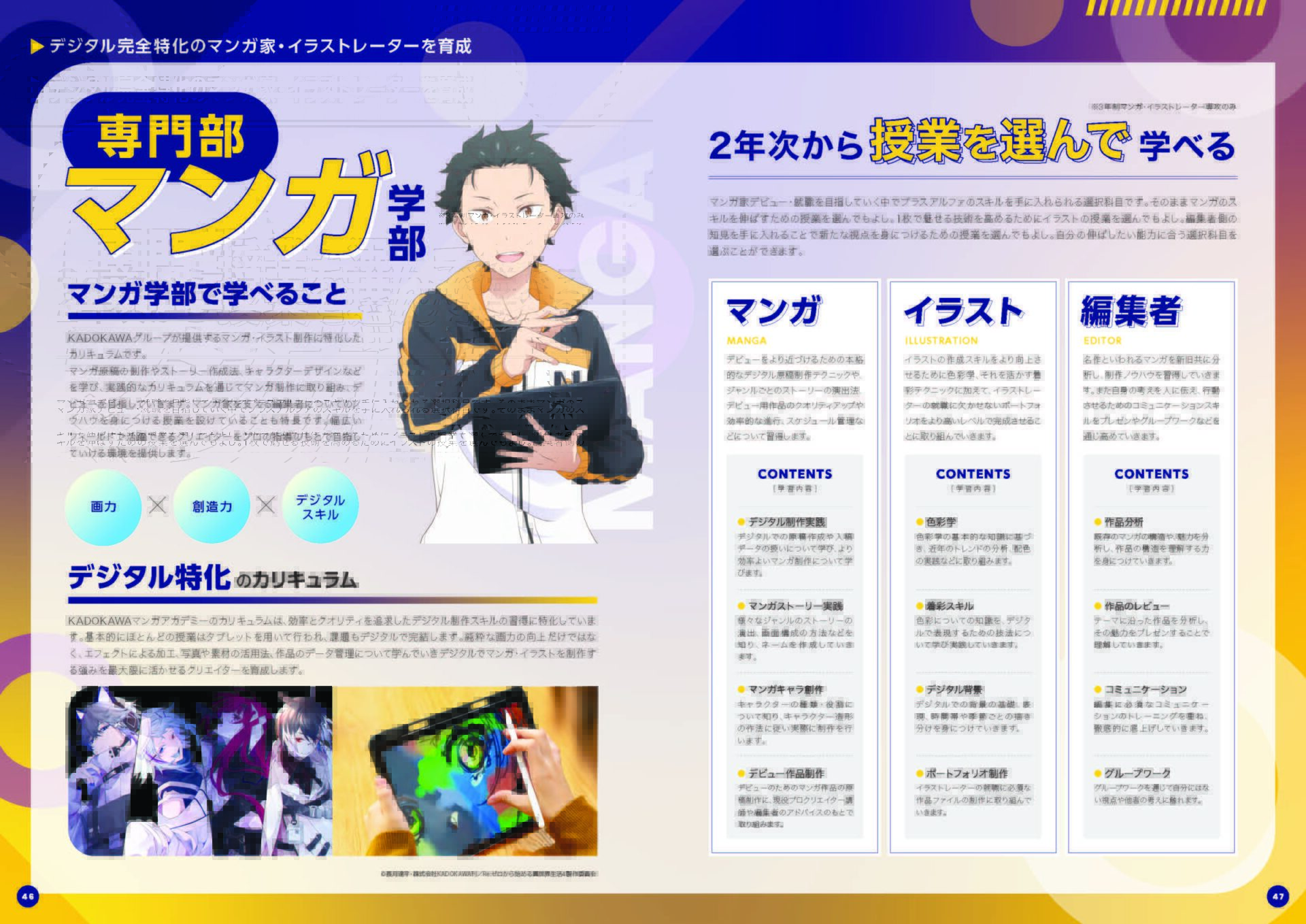 TVアニメ『Re:ゼロから始める異世界生活』の描き下ろしイラストが表紙を飾り、KADOKAWAグループのスクールならではのデザインとなっています。